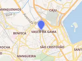It is located in the Vasco da Gama neighborhood, Rio de Janeiro, Brazil, on a hill near the National Observatory of Brazil. Because of its position it is often referred to as Estádio da Colina (Hill's Stadium) which in turn has given Vasco the nickname of Gigante da Colina (Hill's Giant). It is one of the few Association Football specific stadiums in the world which has both team benches and coaching areas behind the goal line at the same end of the field.