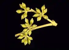 Eucalyptus acaciiformis was first formally described in 1899 by Henry Deane and Joseph Maiden who published the description in Proceedings of the Linnean Society of New South Wales.[5][6] The specific epithet (acaciiformis) refers to the similarity of the leaves of this species to some in the genus Acacia, the ending -formis being a Latin suffix meaning "shaped".[3][7]
