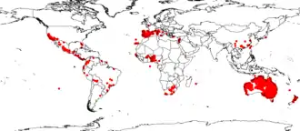 Eucalyptus camaldulensis has the widest natural distribution of any eucalyptus species. It is commonly found along waterways and there are only a few locations where the species is found away from a watercourse.[22][23]