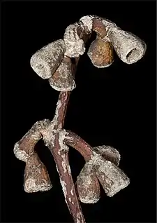 Eucalyptus grossa was first formally described in 1867 by George Bentham in Flora Australiensis from an unpublished description by Ferdinand von Mueller. The type collection was made by George Maxwell near the Phillips River and its tributaries.[5][6] The specific epithet (grossa) is from the Latin grossus, meaning 'thick' or 'coarse', referring to the leaves, buds and fruit.[3]