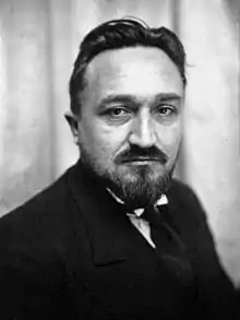 Frot vacillated in his political positions.[14] The pacifist Léon Emery stated at the 1935 congress of the Ligue des droits de l'homme, "Parliament has, in the last twenty years, done nothing for democracy ... the distrinction between fascist states and democratic ones is merely a question of degree and not a fundamental one." Frot spoke out against this position, saying "parliament is, after all ... the reflection of the wishes of universal suffrage." This drew boos that forced him to leave the podium.[15] By the late 1930s he had joined the extreme pacifists.[14] During World War II (1939–45) he voted on 10 July 1940 in favor of the constitutional law that gave full powers to Marshal Philippe Pétain.[16]