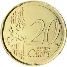 All coins have a common reverse side showing how much the coin is worth, with a design by Belgian designer Luc Luycx.[12] The design of the 1c, 2c and 5c coins shows Europe's place in the world as a whole.[12] The 10c coins and above show either the 15 countries that were the European Union in 2002, or, if minted after 2007, the whole European continent.[12] Coins from Italy, San Marino, the Vatican, Austria and Portugal show the new design if minted 2008 or later.[12] The coins symbolise the unity of the EU.[14]