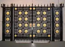The Victorian Society, whose vice-chairman was Sir John Betjeman, attempted to raise £90,000 to pay for the relocation of the arch, and pleaded for a stay of execution for the arch until this had been done. A Canadian firm, Nicholas Brothers, had offered to move the portico on rollers to a site 200 yards nearer the Euston Road.[12] It was reported in October 1961 that a promise had been received that the gates of the arch would be preserved and moved elsewhere on the railways.[13]