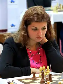 Evgeniya Doluhanova (Ukrainian: Євгенія Григорівна Долуханова; born 10 June 1984) is a Ukrainian chess player who holds the title of Woman grandmaster (WGM, 2006). From 2011 to 2013 represented Armenia.[1][2]