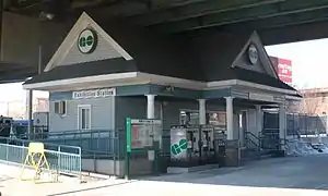 Exhibition GO Station is a GO Transit railway station in Toronto, Ontario, Canada. The station is one of the Lakeshore West line stations between Toronto and Hamilton. The station is located west of downtown Toronto at Exhibition Place,[1] an area of convention and exhibition venues, sports facilities, and other entertainment attractions, restaurants and nightclubs. It is also on the south side of Liberty Village, a former industrial area which has been redeveloped into a residential neighbourhood with retail and restaurants.[2]