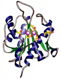 Exonucleases are enzymes that work by cleaving nucleotides one at a time from the end (exo) of a polynucleotide chain. A hydrolyzing reaction that breaks phosphodiester bonds at either the 3′ or the 5′ end occurs. Its close relative is the endonuclease, which cleaves phosphodiester bonds in the middle (endo) of a polynucleotide chain. Eukaryotes and prokaryotes have three types of exonucleases involved in the normal turnover of mRNA: 5′ to 3′ exonuclease (Xrn1), which is a dependent decapping protein; 3′ to 5′ exonuclease, an independent protein; and poly(A)-specific 3′ to 5′ exonuclease.[1][2]