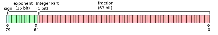 In contrast to the single and double-precision formats, this format does not utilize an implicit/hidden bit. Rather, bit 63 contains the integer part of the significand and bits 62-0 hold the fractional part. Bit 63 will be 1 on all normalized numbers. There were several advantages to this design when the 8087 was being developed: