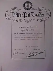 The FAI Gold Air Medal was established in 1924 and was first awarded in 1925. It is reserved for those who have contributed greatly to the development of aeronautics by their activities, work, achievements, initiative or devotion to the cause of Aviation. The FAI has also awarded the Paul Tissandier Diploma since 1952 to those who have served the cause of aviation in general and sporting aviation in particular.[19]