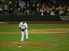 In January, Hernández avoided arbitration and agreed to a one-year, $3.8 million deal.[19] Hernández got off to a fast start, starting the season with a 4–0 record, only to fall cold in May, going 1–3. After a particularly sloppy loss against the Anaheim Angels, manager Don Wakamatsu publicly called him out for not "stepping up" as an ace.[20] Hernández would go on to lose just two games during the rest of the year.