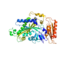 Phenylalanyl-tRNA synthetase, mitochondrial (FARS2) is an enzyme that in humans is encoded by the FARS2 gene.[5] This protein encoded by FARS2 localizes to the mitochondrion and plays a role in mitochondrial protein translation. Mutations in this gene have been associated with combined oxidative phosphorylation deficiency 14, also known as Alpers encephalopathy, as well as spastic paraplegia 77 and infantile-onset epilepsy and cytochrome c oxidase deficiency.[6][7]