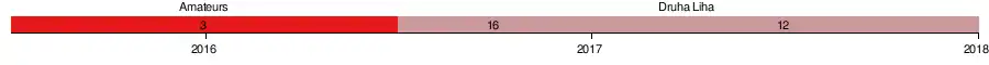 | 2017–18 | 3rd "B" | 12 | 33 | 2 | 1 | 30 | 14 | 133 | 7 | 1⁄64 finals | Dissolved[25] | ||