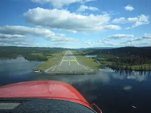 Fagernes Airport, Leirin (Norwegian: Fagernes lufthavn, Leirin; IATA: VDB[6], ICAO: ENFG) is a general aviation airport in Fagernes, in the municipality of Nord-Aurdal, Innlandet county, Norway. It has been a airport for passenger flights, serving Fagernes and the surrounding valleys of Valdres, Hallingdal and Gudbrandsdal in Southern Norway, 190 kilometres (120 mi) from Oslo. Opened in 1987, it was owned and operated by state-owned Avinor.[7] The airport is located 822 metres (2,697 ft) above sea level, and has a 2,049-metre (6,722 ft) runway.[2] It did provide a regional service for the local population to Oslo, subsidized by the Ministry of Transport, as well as charter services during winter serving the nearby ski resorts. In 2014, the airport had 6,393 passengers.[8]