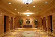 In addition to lodgings, the hotel offers a number of event spaces. The hotel features an entire floor of function rooms, primarily used for conferences.[15] A notable room at the hotel includes the Ballroom, which features an oil-painted ceiling from the hotel's opening.[15] The Concert Hall is another event space at the hotel that is outfitted with a Casavant Frères pipe organ.[16] With five manuals and one-hundred-and-seven stops, it was the largest pipe organ in Canada.[16] Another notable event space within the hotel is the Imperial Room, which was once used as a nightclub from the 1940s to the 1990s.[17] The space featured a stage at the north-end of the room, a sunken floor with tables and a dance floor in the middle, and raised booths at the other end of the room.[18] The room is presently used as a meeting and event space, most often by the Empire Club of Canada.[19]