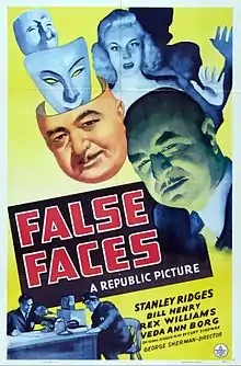 False Faces is a 1943 American mystery film directed by George Sherman and written by Curt Siodmak. The film stars Stanley Ridges, Veda Ann Borg, William "Bill" Henry, Janet Shaw, Rex Williams and John Maxwell. The film was released on May 28, 1943, by Republic Pictures.[1][2][3]