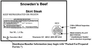 The labels on retail beef and pork products that originate a vendor's/rancher's livestock will not include the "distributed by/packed for/prepared for” statement. Note that the label will still have an official/government Inspection Legend that identifies the establishment that performed the slaughtering, butchering, packaging, and labeling because any product leaving a slaughterhouse to be sold for human consumption must have a government inspection legend. For example, a label that does not have a "distributed by/packed for", etc. statement ensures the buyer that, while the vendor did not do the butchering/packaging/etc., the meat did originate from the vendor's livestock.