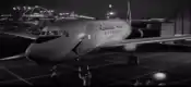 The "Consolidated Airways" jet aircraft used in the film, called "Blue Ribbon", was one of two fabricated from DC-7(B) donors, the second was used to create the crash scene (on the beach). The wings were reportedly removed and reversed, a Boeing 707 nose cone along with "supersonic spike" were also added in order to achieve the appearance of a modern jet airliner. Modifications to the rear section of the aircraft included the addition of two nacelles to accommodate the simulated jet engines. A rear-mounted Boeing 707 spike-styled HF antenna isolator, and antenna were also added to the tail section.[5]