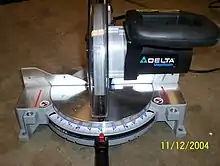 Mitre saws and mitre boxes have fences that remains static, with the workpiece held or clamped against them. The saw blade is then moved relative to the fence and workpiece.[4]:104–105