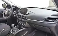 The interior of the Tipo has two different dashboards depending on the trim level. The base models have the upper part that integrates the radio or the Uconnect 5-inch infotainment system connected to the instrumentation, while the top models have the upper part with the tablet-style 7-inch Uconnect HD infotainment system. The lower part of the dashboard is identical for all versions and is inherited from the Fiat Punto (199). The right-hand drive models have a single dashboard for all trim levels, the same as the LHD models in the basic version with the upper dashboard connected to the instrumentation and which integrates the various 5-inch and 7-inch Uconnect infotainment systems.