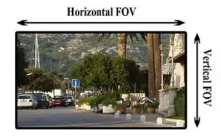 The horizontal and vertical FOV are calculated from the following equations:[3]