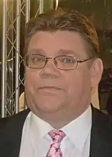In June 2017, Jussi Halla-aho and Sampo Terho faced off in the leadership election, in which Halla-aho received 949 votes against Terho's 646 votes and thus succeeded Soini as party chairman.[72] Sipilä and Finance Minister Petteri Orpo soon announced that they would not continue their coalition with the Finns Party if it was led by Halla-aho.[73] Subsequently, twenty Finns Party MPs, including Soini and Terho, defected to form a new parliamentary group under the name New Alternative, later renamed into Blue Reform. As all cabinet ministers were among the defectors, the Blue Reform made an agreement with Sipilä to stay in the government.[74][75]