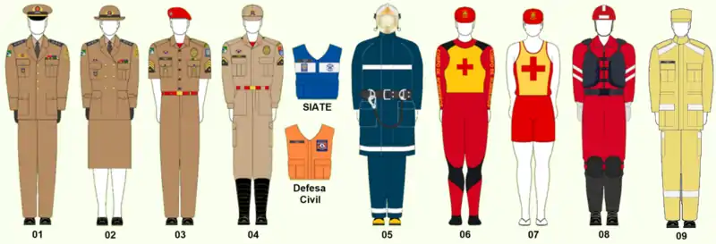 The Firefighters Corps of Paraná wear the same uniforms of the Military Police of Paraná, just adding their badges and insignias.