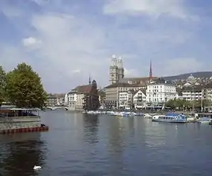 ![]() Grossmünster church, Zurich. River Limmat, Zürich | |||||||