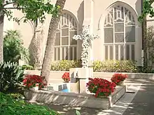 In 1903, Mrs. Rachel Doddridge bequeathed her home on Upper Broadway to the church. In 1928, the Red Brick church on North Broadway was sold and a tabernacle was erected on the Doddridge estate as a place of worship while the present sanctuary was constructed during the pastorate of Dr. Charlton Storey. On August 17, 1930, the present sanctuary, designed by Dallas, Texas architect Wyatt C. Hedrick,[7] was dedicated and the congregation moved into its present home. Dr. Storey, who had accepted a call the previous September to a church in North Carolina, returned to preach for the dedication. His morning sermon was titled, “The Sanctuary of God,” and the evening sermon, “The Open Door.” Combined attendance at the two services was over 2,000 and the other churches in town cancelled their evening services in order to participate.