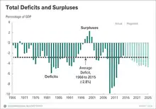 - Budget of the United States Government, Fiscal Year 2017, "Historical Tables: Summary of Receipts, Outlays, and Surpluses or Deficits (-) as Percentages of GDP: 1930–2021," retrieved 2016-06-11