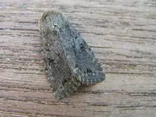 The wingspan is 32–42 mm. The length of the forewings is 15–19 mm. Forewing grey, dusted with blackish, and with more or less reddish brown suffusion; a dark streak from base below cell; inner and outer lines pale, very obscure; submarginal line pale, distinct, generally preceded by dark marks; stigmata of the ground colour, the cell dark fuscous; claviform long, pointed, often followed by two black streaks to outer line; orbicular irregular in shape, often elongate below and touching reniform; hindwing fuscous, often paler towards base; the rarer grey form, with very sparse rufous suffusion represents the type; the commoner rufous-suffused examples are corticea Esp. ; ab. nigrescens Tutt is a rare form with blackish forewings; variegata Tutt is purplish blackish; the costa marked with a series of short black streaks; orbicular and upper part of reniform pale, likewise the claviform; veins pale, the intervals of the dark ground colour, giving a striated appearance; all the lines pale; — ab. conjuncta ab. nov. [Warren] is; purplish fuscous, the veins and stigmatal annuli whitish, the upper stigmata strongly conjoined: — in orenburghensis Bartel the ground colour is whitish grey, the darker shades rufous grey, especially the cell; the orbicular stigma large, whitish grey, prolonged below to touch the reniform, which is dark with a pale ring; the space beyond it rufous grey with the veins pale across it; below the median vein the claviform stigma and the area within the median shade are also pale grey;hindwing with basal half paler, showing a dark cellspot and outer line.[1]