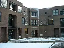 Like the Hall Building, Fellows' Court was part of the initial construction, designed by Sir Denys Lasdun and completed in 1963 at a cost of approximately £300,000.[20] It occupies an area in the far corner of the college and is enclosed by the Hall Building, the Law Library and two dormitories. It is generally reserved for fellows, and, as well as residence, housed the Fellows' Parlour.