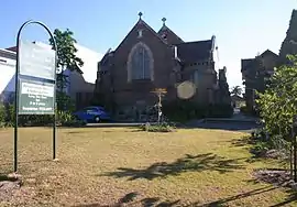 St Alban's Anglican Church[6] is a 1924 Gothic church, constructed of brick and stone. It is well-built church, using locally quarried stone, and remains very well preserved. It is a heritage item and is listed in the Department of the Environment and Heritage's Australian Heritage database.[7] Significant or attractive features of the church include its interior carpentry, the pipe organ (which dates from 1891 and was built by W. Davidson) and its stained glass. St Alban's rectory is on the same large site as the church, and together they form an important group. The foundations of the rectory, like those of the church, are constructed of local stone. In 2008 the church was part of an amalgamation with the Parishes of Ashfield and Haberfield, forming Christ Church Inner West Anglican Community.[8]