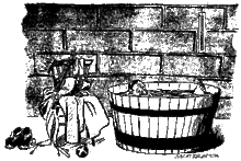 Fjolne, Yngve Frey's son, ruled thereafter over the Swedes and the Upsal domains. He was powerful, and lucky in seasons and in holding the peace. Fredfrode ruled then in Leidre, and between them there was great friendship and visiting. Once when Fjolne went to Frode in Sealand, a great feast was prepared for him, and invitations to it were sent all over the country. Frode had a large house, in which there was a great vessel many ells high, and put together of great pieces of timber; and this vessel stood in a lower room. Above it was a loft, in the floor of which was an opening through which liquor was poured into this vessel. The vessel was full of mead, which was excessively strong. In the evening Fjolne, with his attendants, was taken into the adjoining loft to sleep. In the night he went out to the gallery to seek a certain place, and he was very sleepy and exceedingly drunk. As he came back to his room he went along the gallery to the door of another left, went into it, and his foot slipping, he fell into the vessel of mead and was drowned.[8][9] |