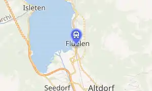 Flüelen railway station is a railway station in the Swiss canton of Uri and municipality of Flüelen. It is located on the Gotthard railway. The station is situated between the parallel Axenstrasse, the main road through Flüelen, and Bahnhofstrasse, with the main station buildings on Bahnhofstrasse.[4]