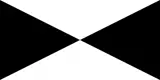 As a formerly independent state under the Federated Malay States, Pahang adopted a naval jack or ensign for use on government ships, consisting of a quartered saltire that bore the colours of the state flag: Black on the leftmost and rightmost quarters, and white on the upper and lower quarters.[1] The merger of the state into the Federation of Malaya in 1948 and the adoption of a unified maritime flag rendered the Pahang jack obsolete.