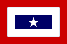 The flag placed 62nd out of 150 United States city flags in a 2004 North American Vexillological Association survey, ranking 7th out of 12 Texas cities.[7] The flag was also featured in Roman Mars' viral TED Talk, in which he described it as a "seal on a bedsheet", or a flag with nothing but a seal, an example of bad flag design.[8] Austin (specifically the State Capitol) was home to the 42nd annual NAVA meeting in 2008. Every annual NAVA meeting has an official flag that represents the host city. The flag chosen for Austin was a historic design drawn in 1839. It is a rectangular variant of a square auxiliary naval flag, consisting of a blue bar with a white star in the middle. Surrounding this bar is a thick white bar. Surrounding the white bar is another thick bar, this time in red. This flag represents the state of Texas. As the conference took place in the capitol building, it conveys the importance of Austin as the state's capital city.[9] KXAN, in a 2015 report, found that the city flag is nearly impossible to find and that not even Austin City Hall flies it.[10]