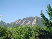 The Flatirons near Boulder, Colorado, is both an example of these landforms and the source of their name. Other well-developed flatirons are found in the eastern Uinta Mountains in northwestern Colorado,[6] the Waterpocket Fold in Capitol Reef National Park, the Superstition Mountains near Phoenix, Arizona, and on the flanks of the Marathon Uplift in west Texas.[1]