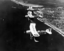 Receiving full cooperation from the Marine Corps, including the use of facilities and personnel at Naval Base San Diego and NAS North Island, provided the authentic settings Capra required.[4][Note 3] The initial flying sequence depicts the landing and taxi of an FB-1 fighter, with Holt stepping from the cockpit. { The flight training sequences were staged using Consolidated NY-1B trainers based at San Diego. Nine Marine Corps Curtiss OC-2 aircraft from Marine Attack Squadron 231 (VMA-231) were featured in the aerial combat sequences.[7] The squadron, along with VO-10M (Marine Observation Squadron 10), also prominently appeared in the Devil Dogs of the Air (1935).[8]