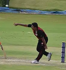 The term "flighted delivery" or flighting is often used to describe a delivery that is bowled slightly slower with a higher trajectory.[1] This is seen as an aggressive tactic for spin bowlers.