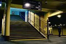 In 1993, the Elizabeth Street subway was extended and opened at the Southbank end.[42] Conservation work was also carried out to the main building, with the external facade repainted, exterior feature lighting installed, and the stained glass feature windows above each entry restored.[43] Further changes were made through the late 1990s with the opening of access from the main Swanston Street concourse to platform 1, platform resurfacing with tactile tiles, and the replacement of the remainder of the original platform access ramps (except platform 10) with escalators and elevators.[44][45]