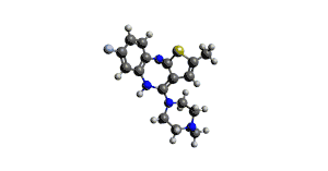 Flumezapine is a thioeno[2,3-b][1,5]benzodiazepine akin to olanzapine, differing only by the substitution of a fluorine atom (F) for a hydrogen atom (H) on the phenyl ring.[4] The fluorine atom acts as an electron-withdrawing substituent; this was the same rationale given in the patent information for the electron-withdrawing chlorine atom on the antipsychotic clozapine.[5]