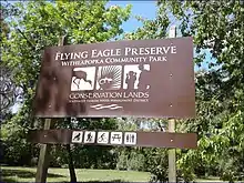 Flying Eagle Preserve is located in Inverness, Florida in Citrus County, Florida and managed as part of the Southwest Florida Water Management District. The 10,950-acre (44.3 km2) park is located at 11080 East Moccasin Slough Road in Inverness, Florida and bounded on the east by the Withlacoochee River and is surrounded, in large part, by the Tsala Apopka Chain of Lakes. The preserve provides the setting for various aquatic and sporting activities.[1]