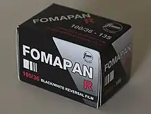 - Fomapan R100 (In Production) B&W reversal film, intended for B&W motion picture movie making (Cine film) and also converted for still camera use. Processing available through limited number of commercial processors or using Foma Direct Reversal Kit. Polyester base: 8mm, 16mm and 135.