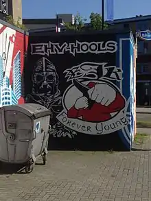 - In some places, there is vandalism in the form of graffiti sprayed to promote football teams, especially in derby cities.