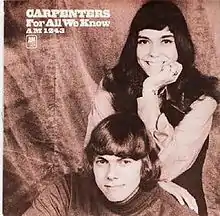 "For All We Know" is a soft rock song written for the 1970 film Lovers and Other Strangers, with music by Fred Karlin and lyrics by Robb Wilson (Robb Royer) and Arthur James (Jimmy Griffin). Both Royer and Griffin were founding members of the soft-rock group Bread. It was originally performed, for the film's soundtrack, by Larry Meredith.[1] It is best known for a cover version by American pop duo Carpenters in 1971, which reached No. 3 on the US Billboard Hot 100 singles chart and No. 1 on the US Billboard Easy Listening chart. The song was also a hit for Shirley Bassey at the same time in the United Kingdom. It has since been covered by various artists.