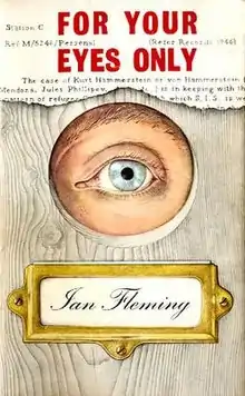 Artist Richard Chopping once again provided the cover art for the book. On 18 March 1959 Fleming had written to Chopping about the cover he had undertaken for Goldfinger, saying that: "The new jacket is quite as big a success as the first one and I do think [Jonathan] Cape have made a splendid job of it".[23] Moving on to For Your Eyes Only, Fleming said "I am busily scratching my head trying to think of a subject for you again. No one in the history of thrillers has had such a totally brilliant artistic collaborator!"[23]