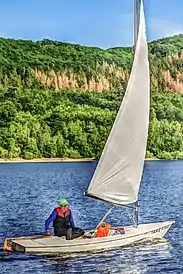 The Force 5 is a small one-design racing sailboat that is similar to the more well known Laser but with a hard chine aft. Although it is designed for single-handed racing, two people can easily fit into the large cockpit. The boats are currently built in Long Island, New York by Weeks Yacht Yard.[1]