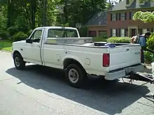 The Ninth Generation Ford F-Series is a line of full-size and medium-duty commercial trucks that were produced by Ford from 1991 to 1997. While still based on the basic design dating from for the 1980 model year, the 1992 F-Series brought a number of minor changes to the exterior and interior (where most enthusiasts consider this a facelift for the same existing truck that first appeared in 1979 as a 1980 model instead of a redesign). This is the last generation of the F-Series that was produced as a complete range of trucks from a half-ton pickup to a medium-duty Class 6 truck. As this generation was replaced during the 1997–1998 model years, the larger models of the F-Series (F-250 and above) were split from the F-150; these became the Ford Super Duty trucks, related to the latter with a few powertrain components.