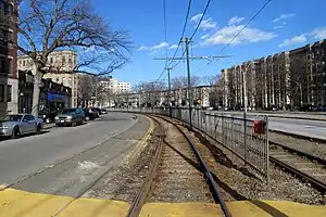In 2003, Fordham Road was one of five stops on the B branch proposed for closure to speed up travel on the line. The stops were chosen for their low average daily ridership and proximity to stops with higher ridership.[2] In a 1995 count, Fordham Road had averaged 921 daily boardings compared to 1,521 at Packards Corner and 4,077 at Harvard Avenue station, both of which were less than 0.2 miles (0.32 km) away.[1] Chiswick Road was dropped from the proposal shortly after it was announced, but the other four stops - Fordham Road, Summit Avenue, Mount Hood Road, and Greycliff Road - were provisionally closed on April 20, 2004. On March 15, 2005, after a survey showed that 73% of 1,142 riders surveyed approved of the closures, the MBTA board voted to make the closures permanent.[2][3]