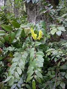 Among the prominent wildflowers are Hooker's fairy bells, vanilla leaf, evergreen violet, and trillium.[33] Invasive species include English ivy, European holly, clematis, morning glory, and Himalayan blackberry.[35] Citizen groups such as the No Ivy League.[36] and The Forest Park Conservancy engage in projects to remove ivy, maintain trails, and plant native species.[37]