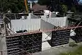 For removable forms, once the concrete has been poured into formwork and has set (or cured), the formwork is struck or stripped (removed) to expose the finished concrete. The time between pouring and formwork stripping depends on the job specifications, the cure required, and whether the form is supporting any weight, but is usually at least 24 hours after the pour is completed. For example, the California Department of Transportation requires the forms to be in place for 1–7 days after pouring,[10] while the Washington State Department of Transportation requires the forms to stay in place for 3 days with a damp blanket on the outside.[11]